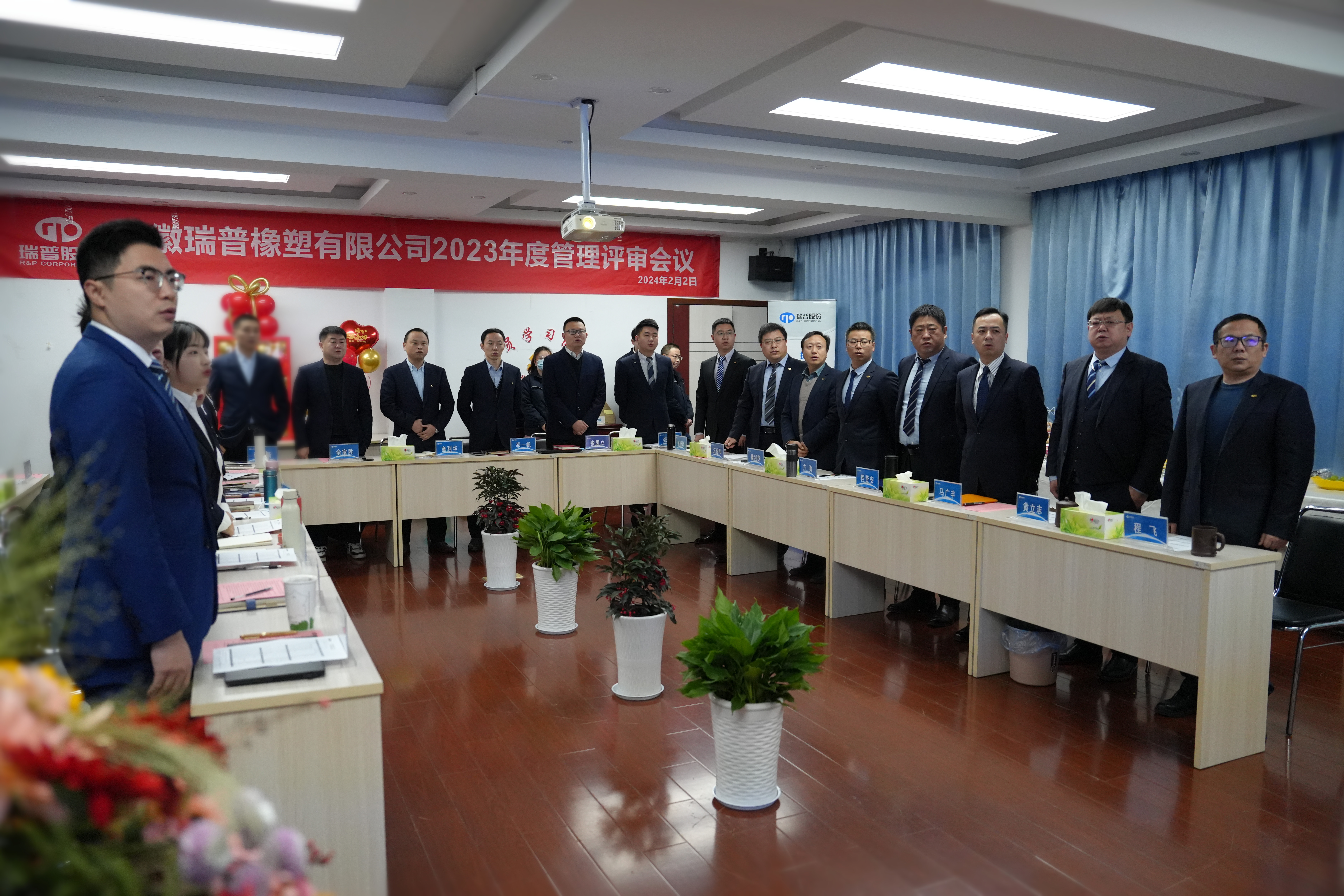 安徽瑞普橡塑有限公司于2024年2月2日上午08點(diǎn)00分在公司三樓會(huì)議室召開2023年度管理評(píng)審會(huì)議。會(huì)議由質(zhì)量總監(jiān)主導(dǎo),質(zhì)量經(jīng)理主持,公司高管及各職能部門、子公司負(fù)責(zé)人共30余人參加會(huì)議。